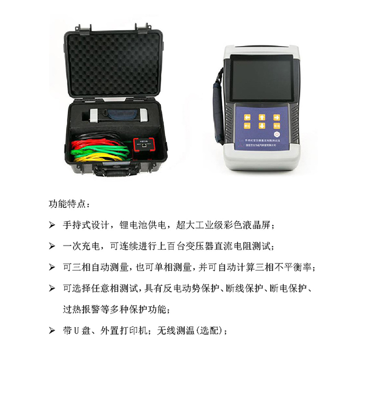 儀器不僅適合于變壓器、互感器、電機(jī)等感性試品,還適用于銅排、導(dǎo)線、開(kāi)關(guān)觸點(diǎn)等阻性試品的測(cè)量